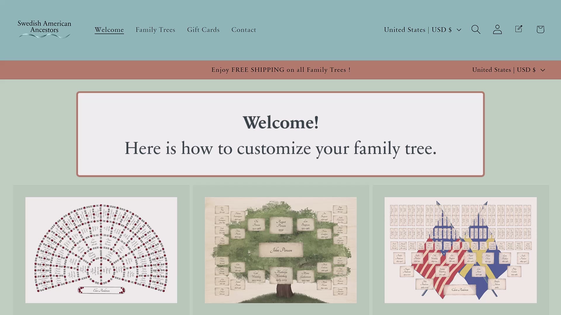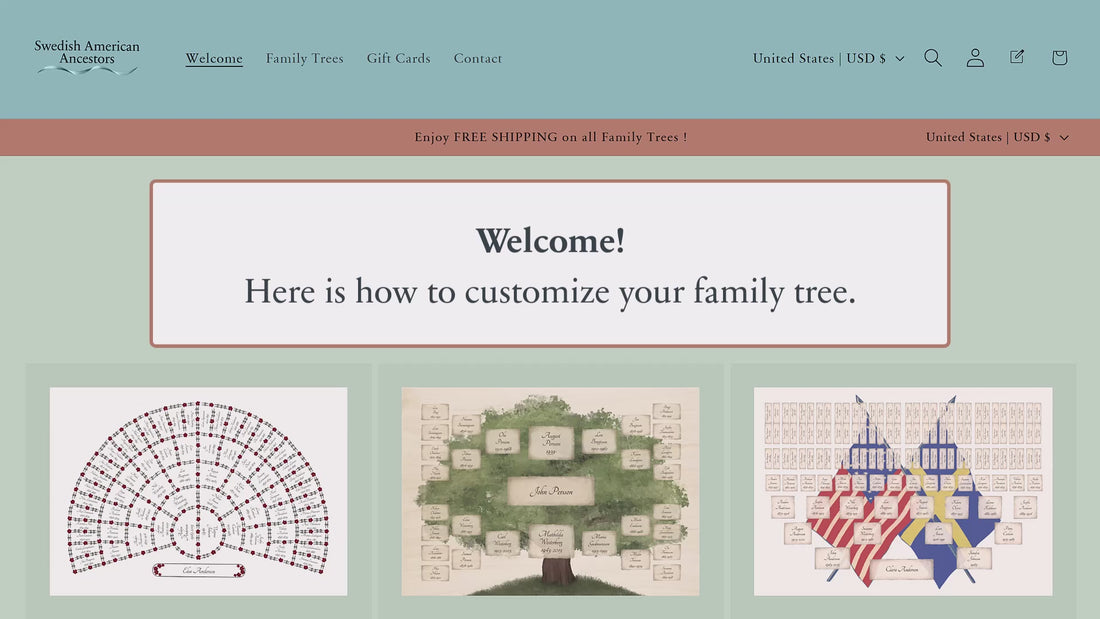 We can also customize the family tree for you for an additional fee (4-5 generations is 10$, and 6-7 generations is 20$). To request customization, simply send an email to Info@SwedishAmericanAncestors.com. We will respond with a form to fill out.